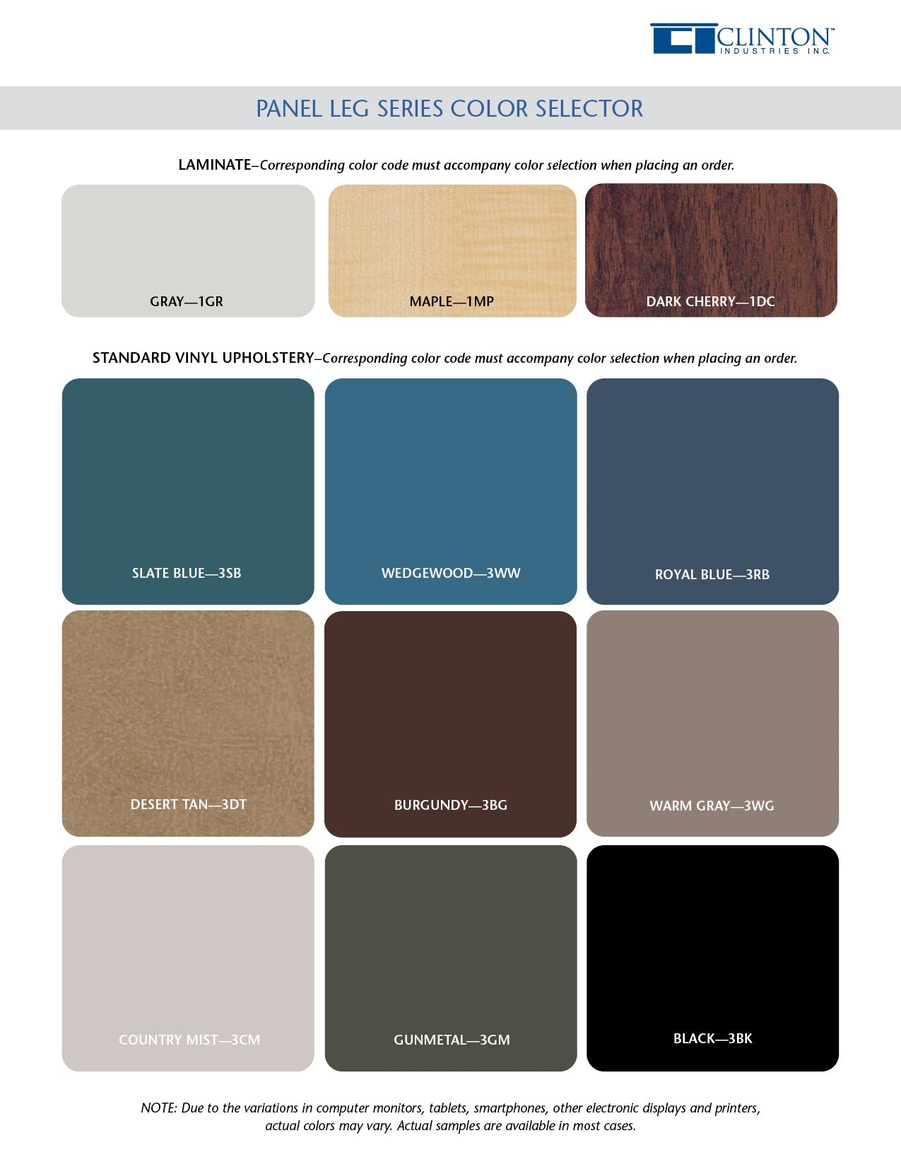 - Choice of upholstery colors