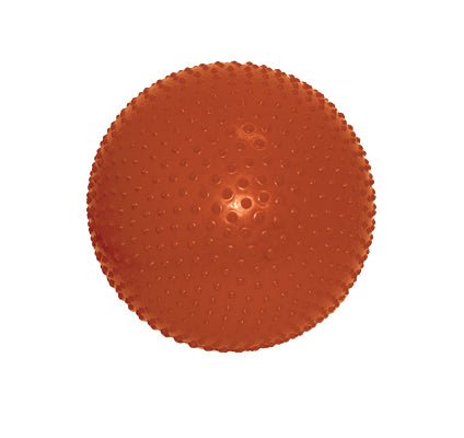 The CanDo inflatable exercise sensi-ball has a specially textured "nubby" surface that adds tactile and visual elements to ball therapy. The bumps also massage the user. Balls are used to improve balance, coordination, flexibility, and strength, and even just for fun. Balls can support up to 300 pounds. Available in various color-coded sizes.
