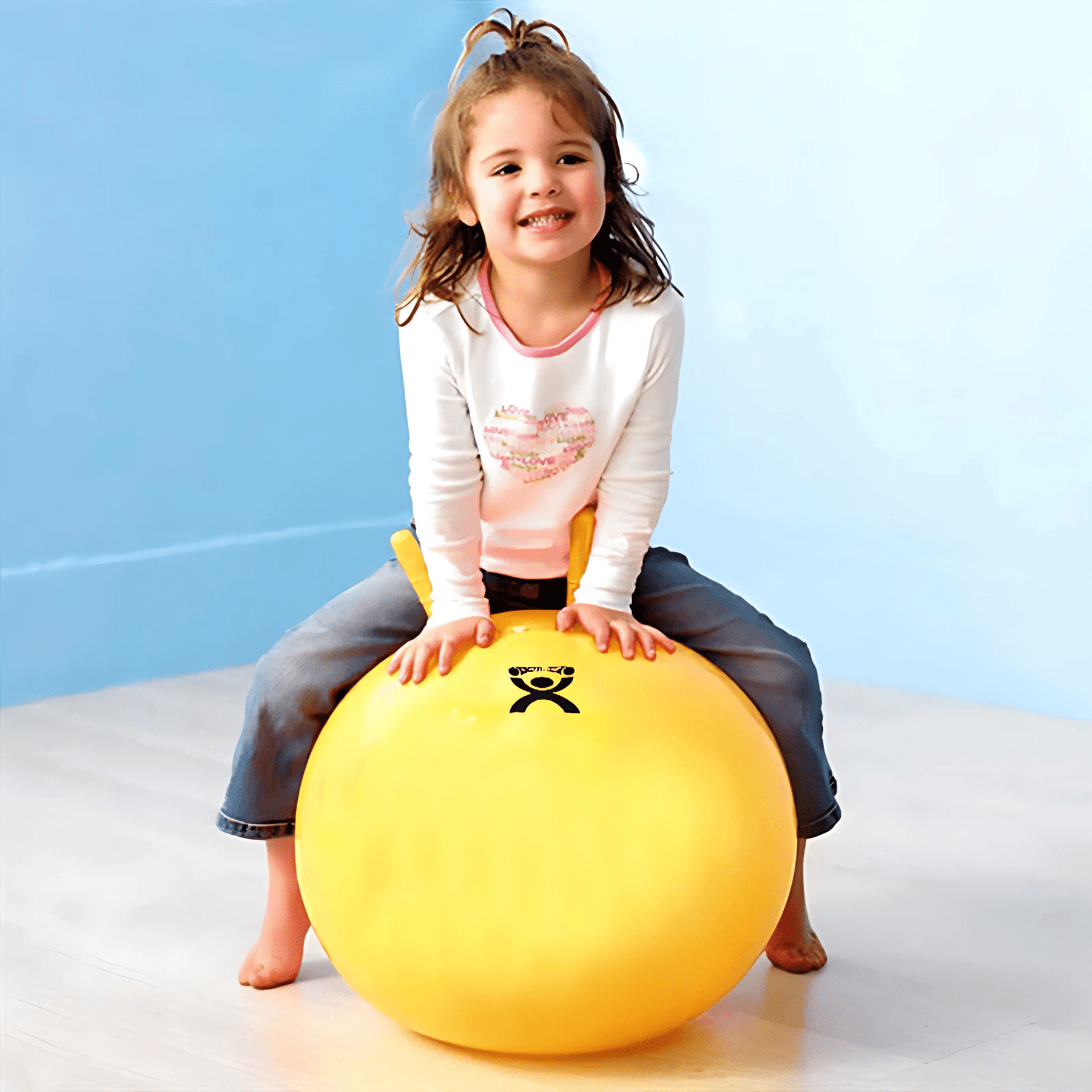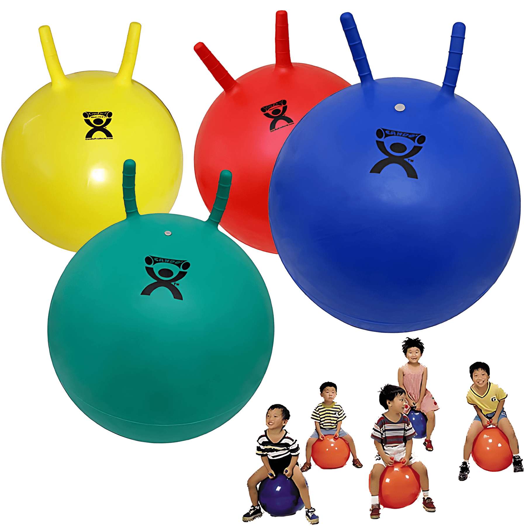 The CanDo Inflatable Exercise Jump Ball is a heavy-duty inflatable jump ball that is ideal for exercise activities, and a fun way to provide proprioceptive and vestibular stimulation. The ball has heavy-duty grip handles designed to give the user secure control at all times. Available in four sizes to fit almost every size child. Ball holds up to 300 pounds.