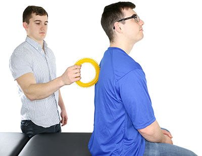 Target and soothe aches and pains with the massage ring. This product measures 6.5" in diameter and features many nubs that can be rolled across the body to ease sore and tired muscles. Roll this massage across the body to provide a sensory experience to hands, arms, feet, legs, or even the back. This hand held massage tool can be used for clinics or at home use.