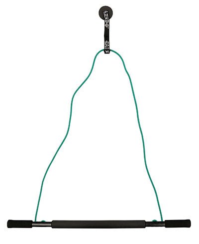 Use CanDo dynamic exercise, tubing and pulley system in the standing or seated position. Exercise superficial muscles and the deeper lying muscles. The exercise bar can be used isometrically and dynamically. X-light resistance, yellow, CanDo exercise tubing is attached to both ends of foam padded exercise bar. Tubing is then attached to swivel-pulley system. The pulley is attached to top of door or in side door jamb by closing the door on the included door anchor. Closing the door creates your instant exercise station