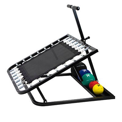 The CanDo Square Ball Rebounder, which has a built-in rack, is ideal for physical therapy, rehabilitation and training sessions to improve strength, reflexes and coordination. The rebounder and balls are a fun way to improve conditioning, hand-eye coordination and lateral movements. The rebounding area is a generous 39" (diagonally) attached by springs to a 39.5" x 39.5" frame that tops out at less than 4.5' tall. The angle of inclination adjusts from 0- 42 degrees, making this the perfect athletic trainer. The weighted physical therapy balls are versatile as well. With a partner to throw with, the rebounder isn't even needed. With rounded corners and a foam-covered handle, the rebounder is safe for all home and multi-use environments.