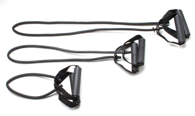 Lightweight, compact and portable, the tubing exerciser helps perform strengthening and conditioning workouts on-the-go, even in your hotel room! Two permanent foam covered rigid handles give the exerciser comfort and a firm grasp. CanDo is licensed to use the Thera-Band color sequence so resistance level is easily identified. The tubing with handles exerciser is available in 7 levels of resistance for progressive exercise and 3 lengths to accommodate different needs. Levels range in order of strength from least to greatest resistance: tan, yellow, red, green, blue, black, silver. Length represents length of tubing from end to end when unit is laid flat and is taut. CanDo low powder exercise tubing is made of natural rubber latex, which may cause allergic reactions.