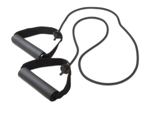 Lightweight, compact and portable, the tubing exerciser helps perform strengthening and conditioning workouts on-the-go, even in your hotel room! Two permanent foam covered rigid handles give the exerciser comfort and a firm grasp. CanDo is licensed to use the Thera-Band color sequence so resistance level is easily identified. The tubing with handles exerciser is available in 7 levels of resistance for progressive exercise and 3 lengths to accommodate different needs. Levels range in order of strength from least to greatest resistance: tan, yellow, red, green, blue, black, silver. Length represents length of tubing from end to end when unit is laid flat and is taut. CanDo low powder exercise tubing is made of natural rubber latex, which may cause allergic reactions.