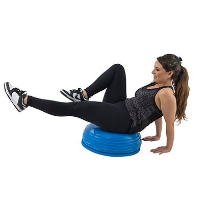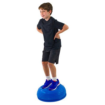 The CanDo Wobble Ball can be used for vestibular stimulation, core training, and general balance exercises. You can adjust the level of difficulty by adding or removing air from the Wobble Ball. Use the dome curved-side down as a seat, rocker board, or to kneel on for vestibular activities. With the flat side down, use the Wobble Ball for balance, core and strengthening exercises.