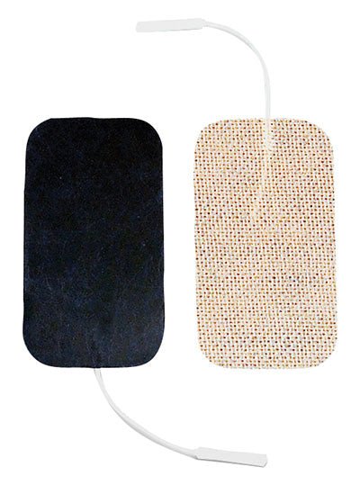 Dura-Stick Standard electrodes have a white cloth back and a carbon film conductive material. The electrodes come with re-sealable packaging with fields for patient name, first-use, and number of uses.