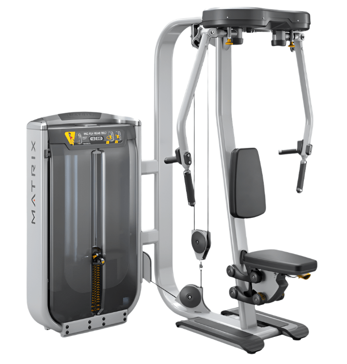The Matrix Ultra Pec Fly / Rear Delt offers a powerful, comfortable way to strengthen major upper-body muscle groups! The rotating grips provide smooth movement during use, while an angled back pad and delt grips optimize user biomechanics. The oversized handles reduce the need to adjust the seat position between pec fly and rear deltoid exercises. It even includes a heavy weight stack to accommodate strength training enthusiasts looking to go farther with their strength training workouts.
