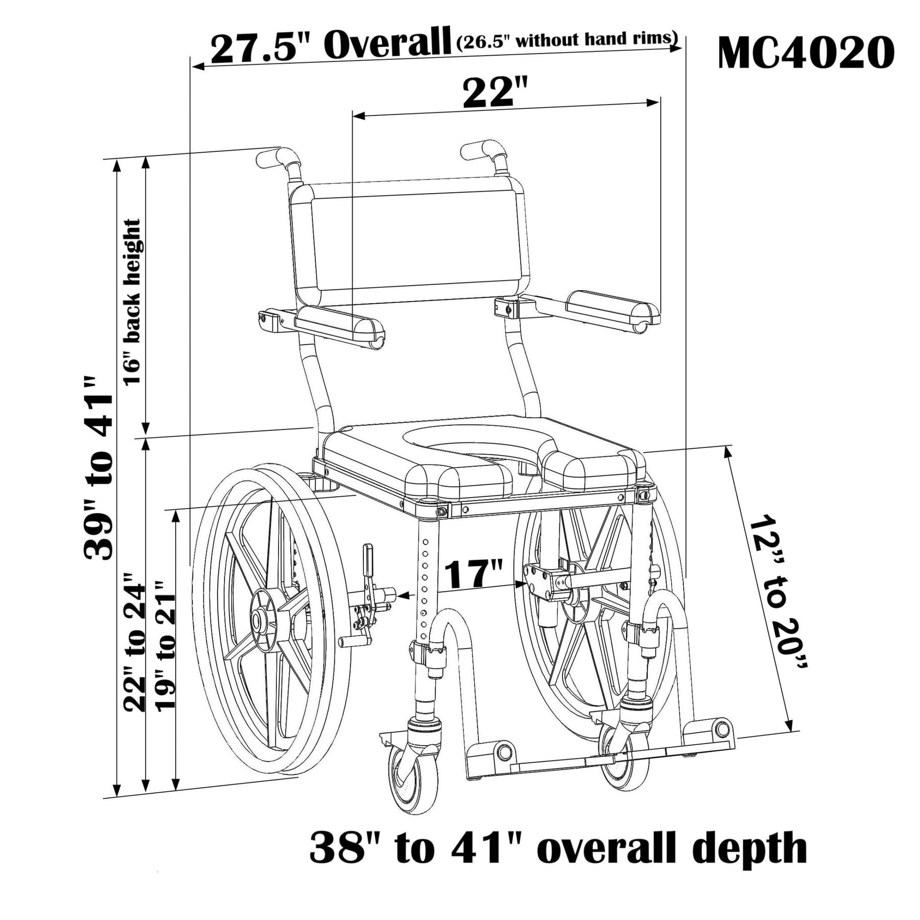 This user-propelled shower chair is lightweight, strong, portable, durable, and with easy adjustability to make it adaptable to nearly any living situation. With 20″ wheels and oversized hand-rims that allow the user to self-propel; this model was designed for the more independent user.