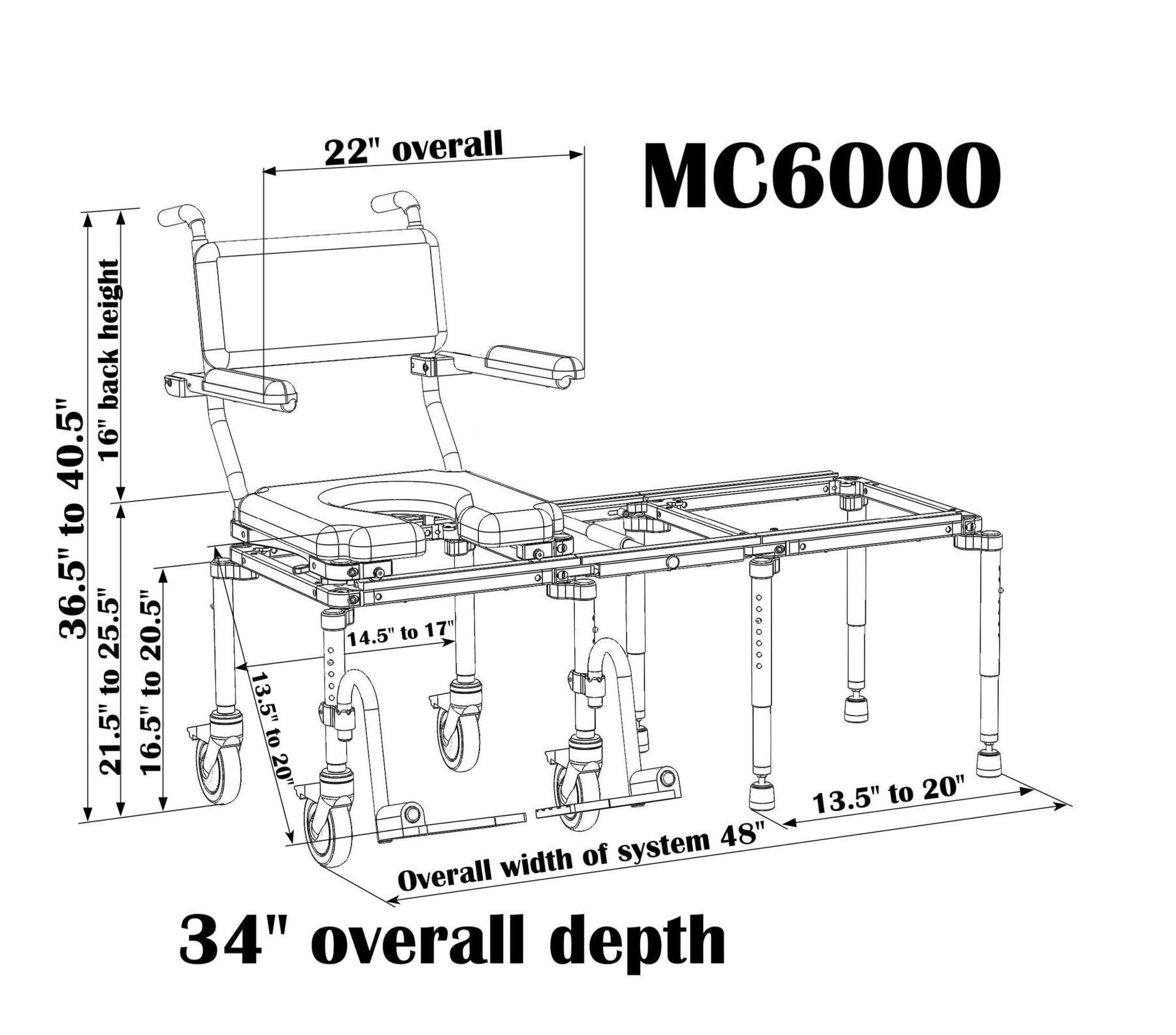 A best seller! A commode chair, tub access slider system, and in-home mobility chair in one complete unit. Requiring just one bedside transfer, the MC6000 eliminates the need for transfers onto toilets and into tubs in the dangerous bathroom environment. Safe and convenient, the system includes the smoothest rolling transfer system available on the market.