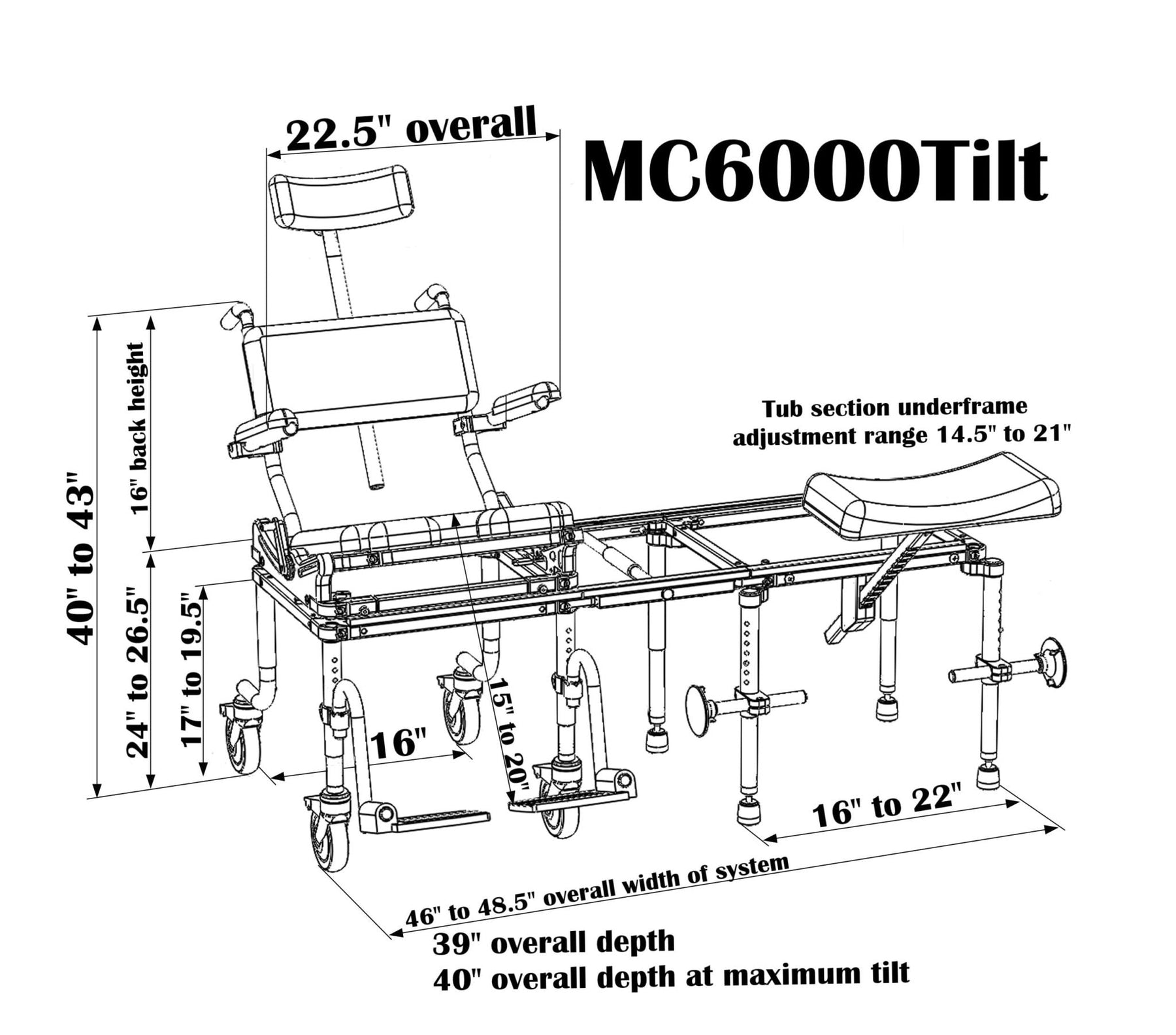- High quality Derlin wheels and self-aligning slider tracks for smooth transfer of seat into tub.