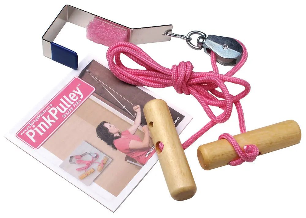 - CUSTOM PULLEY – PinkPulley system contains a custom-designed pulley with a zinc-coated metal housing that won’t melt or deform over time and a smooth self-lubricating nylon roller. Great for recovery and rehabilitation after surgery or injuries and for improving pain free mobility. Helps enhance the range of motion for people suffering from arthritis, tendonitis, frozen shoulder syndrome, rotator cuff injury, bursitis and other impingement issues.