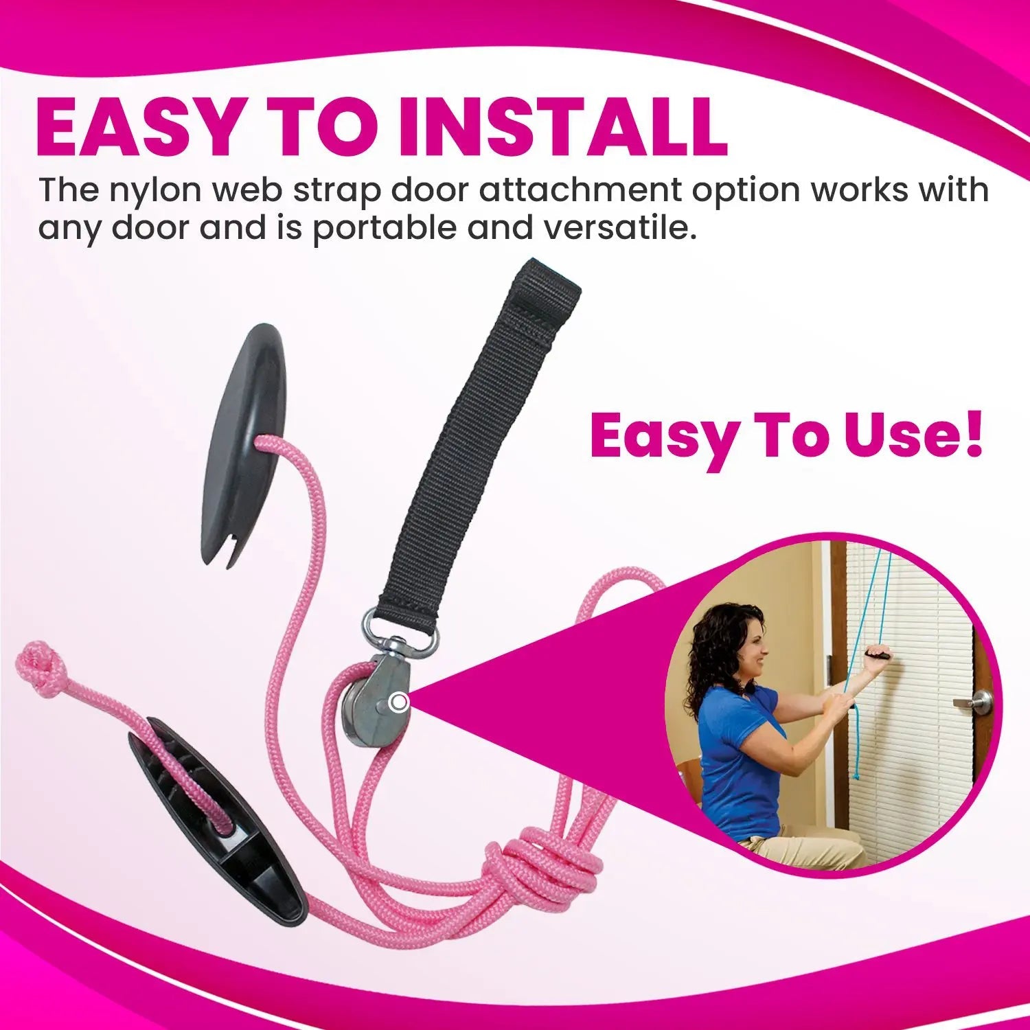 NYLON DOOR STRAP – The nylon web strap makes it easy to attach the pulley system over the top of any closed door. Fits most doors.