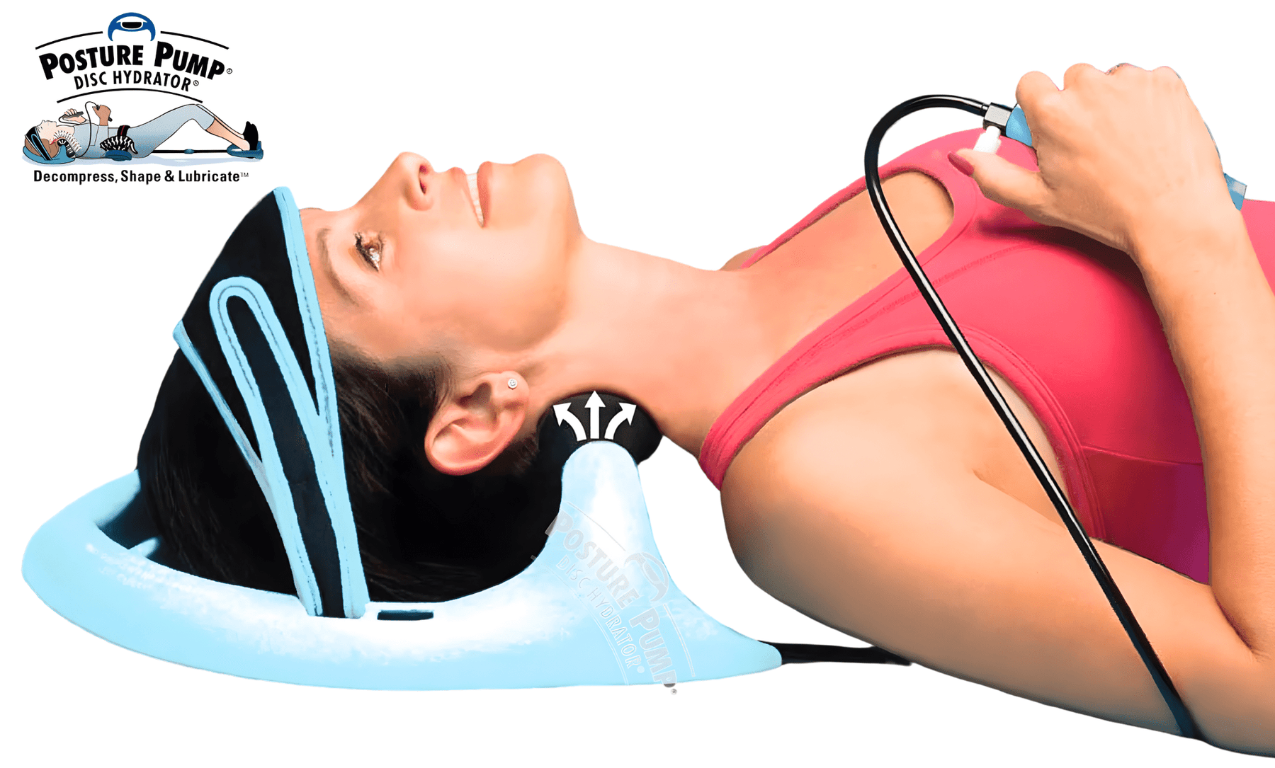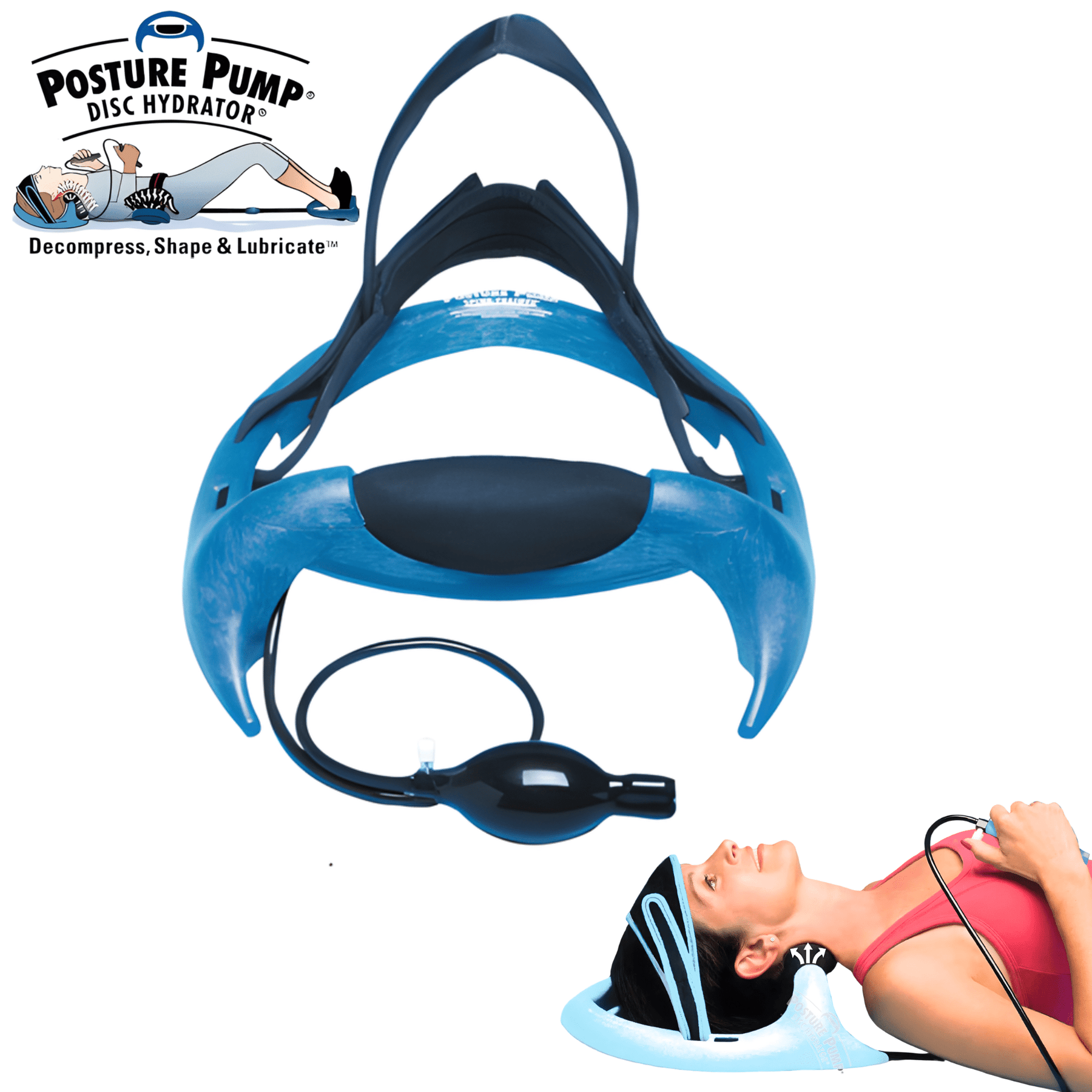 The Posture Pump 1100-S is a portable, handheld-pump spinal traction device designed to gently decompress, hydrate, and restore the natural cervical (neck) curve — all from the comfort of your home. Using patented air-cell technology called “Expanding Ellipsoidal Decompression (EED)”, the device applies gentle, multi-vector traction to your neck vertebrae to relieve pressure on discs and joints.