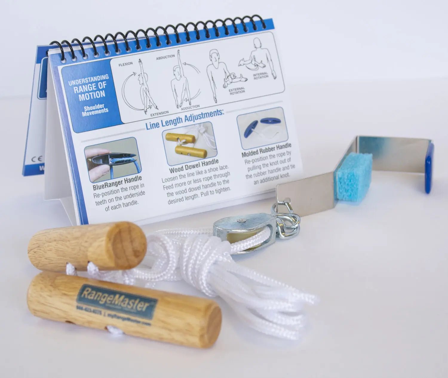 - ALL IN ONE KIT – RangeMaster’s Shoulder Therapy Kit helps move you through the phases of recovering from a shoulder injury, surgery, or pain. It includes our Shoulder Pulley with Metal Bracket Door Attachment, collapsible Shoulder Wand, ShoulderFit Resistance Exerciser, PosturePT, Comprehensive English/Spanish Exercise Guide, 7 Steps to Shoulder Health Recovery, and Carrying/Storage Bag.