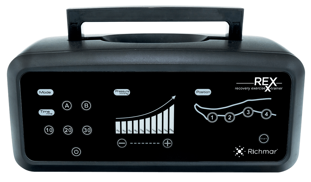 - Capable of reaching a compression level of up to 200mm Hg, the Richmar REX is ~2-3X more powerful than other compression products in the world. Studies show that the more powerful the pressure applied to the muscle tissues, the more effective the metabolic flush is, resulting in a more effective and faster recovery process for the user.