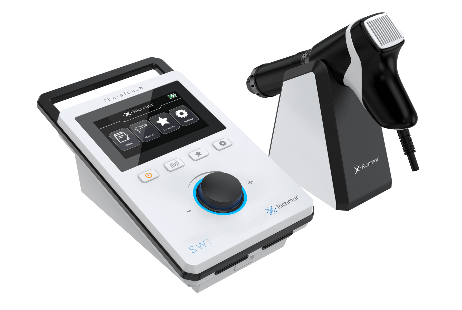 Introducing Richmar's latest new radial pulse shockwave, the Richmar TheraTouch SW1 Portable Shockwave. This device utilizes radial pressure waves to deliver a high energy mechanical force to the body’s tissue to treat various musculoskeletal conditions. The radial pressure waves are transmitted through an ergonomic handpiece and applicator that can effectively penetrate 35mm into the tissue. The TheraTouch SW1 features a rather intuitive and simple-to-use touch screen interface that offers a wide variety of preset protocols that were carefully programmed according to ISMST (International Society for Medical Shockwave Treatment) Guidelines and clinical testing. This unit comes equipped with everything you require to provide effective treatment, including multiple applicators, a sleek carrying case and a rechargeable battery with a three hour battery life, allowing for easy, portable on-the-go treatment.