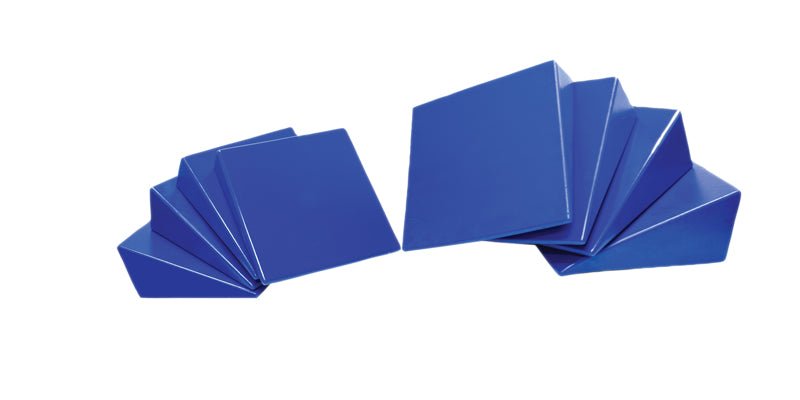 Skillbuilders wedges are made of molded foam coated with a tough integral washable coating. Heavy duty positioning and vestibular wedges are ideal for institutional use in physical therapy departments, home use, special education programs, pre-school programs, physical education classes and the gym. They can be used under the back, arm, or leg of a patient for comfortable and functional positioning. They can be used to provide the necessary leverage to promote an exercise regime.