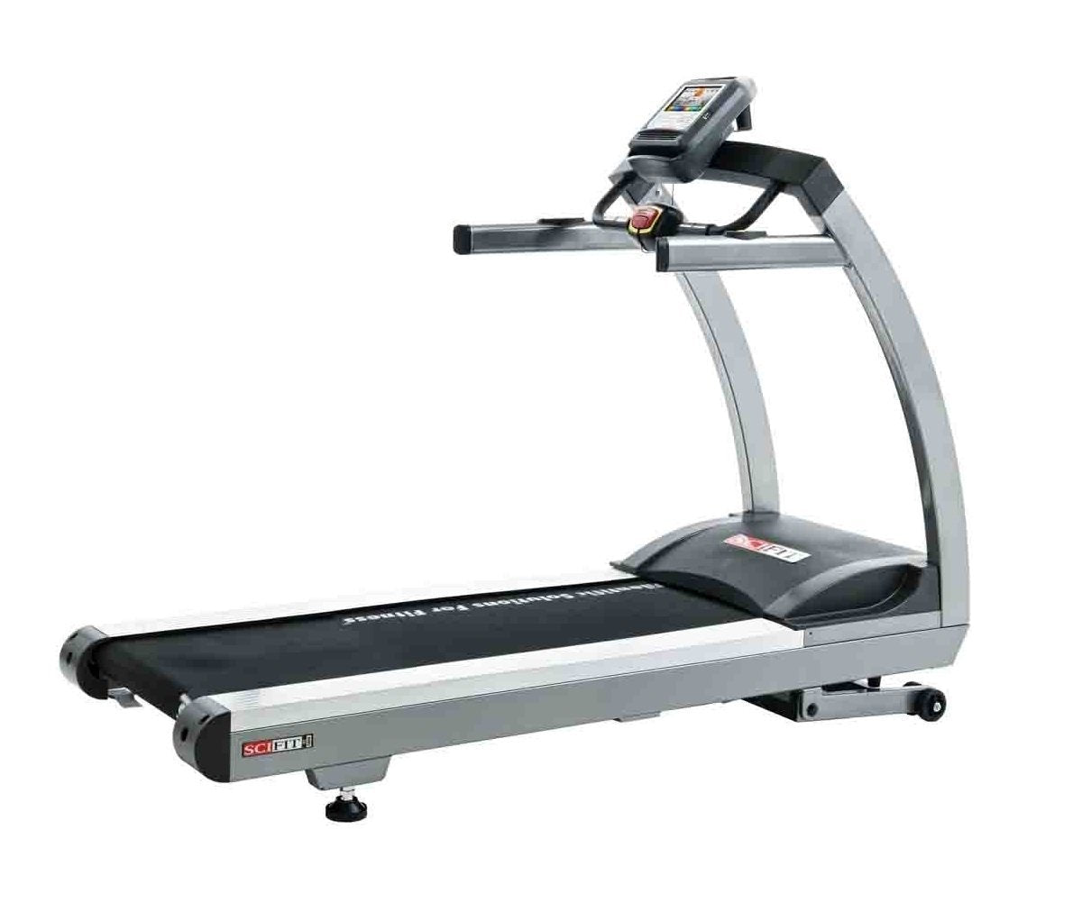 SciFit AC5000 Treadmills are smooth and powerful with a 550lb user weight capacity. The side handrail switches for easy adjustment of speed and elevation. It also features a slow starting speed to ensure safety and makes it easy to make changes to the workout. The walking surface is 22" x 62".