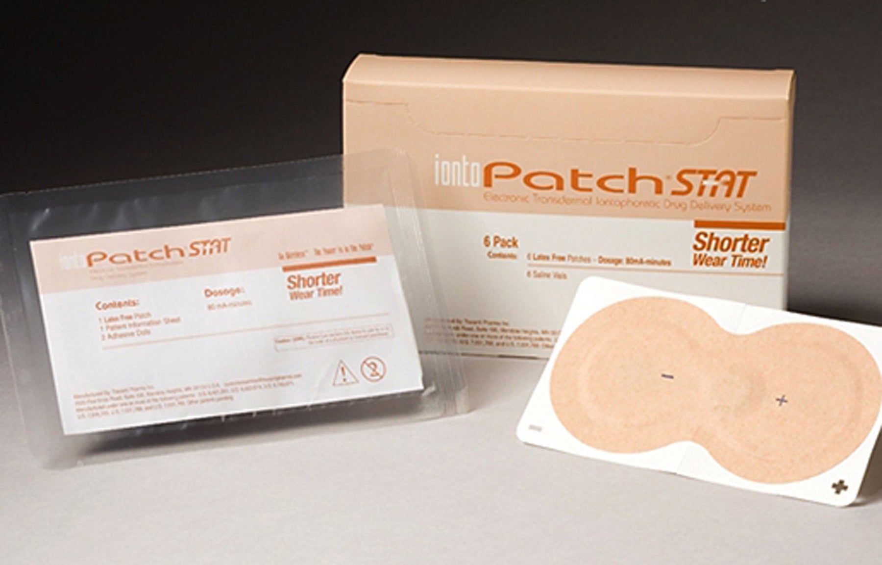 Technician applies medication directly to the IontoPatch® electrode. Shuts off automatically when prescribed dose has been administered. IontoPatch® STAT Designed to treat the same anatomical areas as IontoPatch® 80 and offers the same product benefits in a shorter 4-hour average patient wear time. 80mA-min. STAT, patch/Vial, 80mA-min, pack of 6