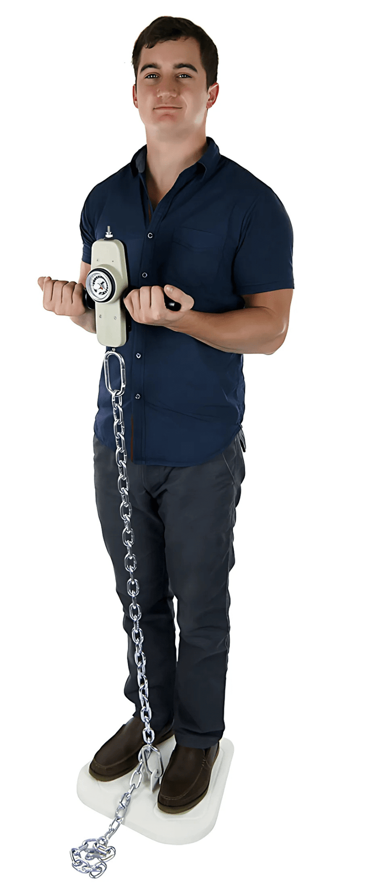 Can be used with lift platform (sold separately) to conduct muscle strength and functional capacity tests. Compatible with Baseline single and dual grip handles (sold separately). The strength reading can be viewed as pounds or kilograms. CE Certified. This unit comes in a protective carrying case.