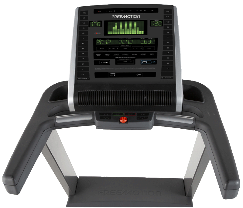 On this console you will see your speed, time, incline, distance, vertical feet, pace, calories burned, calories burned per hour and heart rate.