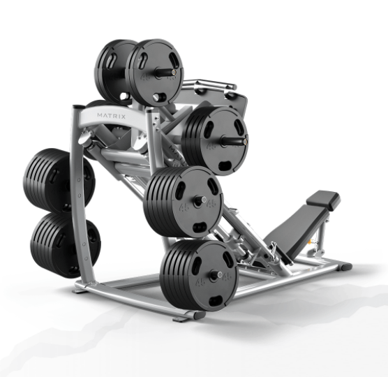 The Magnum 45-Degree Leg Press targets the quadriceps and glutes with efficient movements. An adjustable bottom stop provides long or short ranges of motion for users of all heights, and an adjustable back pad enhances comfort while optimizing the angle of the hips and accommodating a variety of body types. It includes an easy-to-use racking mechanism; platform handles for easier entry and exit and linear bearings for a smoother feel. Six integrated weight horns hold multiple plate sizes.