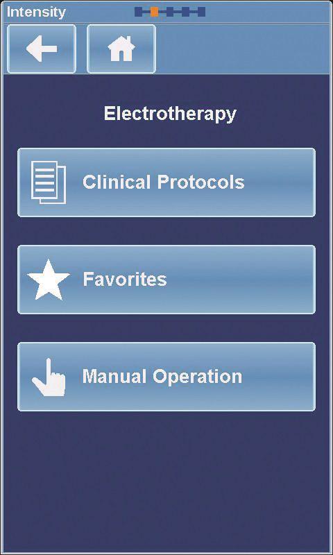 A few simple key presses are all that is needed to quick-start a treatment. Parameters can be easily selected and adjusted. Clinicians can choose to use preset clinical protocols or customize their own. The “Favorites” feature allows user-defined protocols to be stored for future use.
