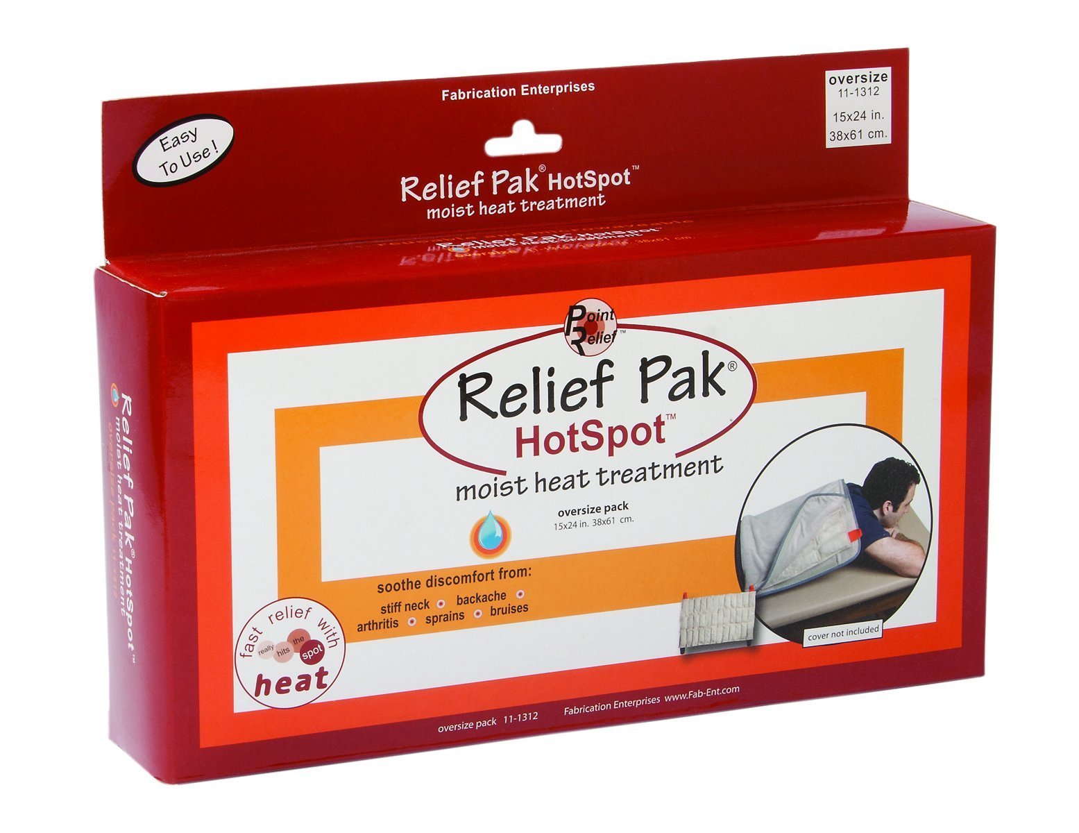 Relief Pak® moist heat packs and covers are a simple and effective method of applying moist heat. The moist heat packs provide 30 minutes of therapeutic moist heat to soothe discomfort from stiff neck, backache, arthritis, sprains and bruises. The pack can be heated in water on a stove, in a microwave or in a heating unit. When treatment is complete, the pack can be stored for future use. Always apply moist heat pack with a Relief Pak® cover or a heavy towel completely wrapped around the pack. Pack - oversize - 15" x 24"