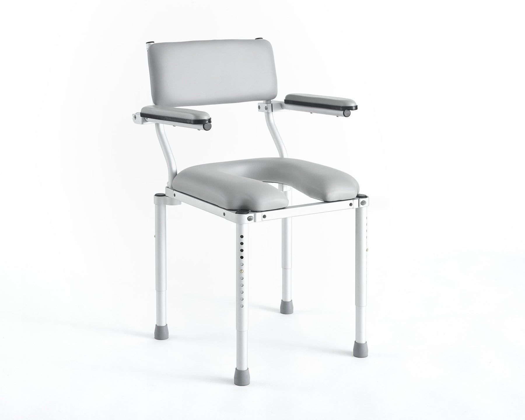 A lightweight, durable and highly functional shower/commode chair that can go nearly anywhere. Designed for more independent users that transfer with little or no assistance. The chair is portable and can easily be moved from one bathroom to another and can be used for traveling, providing independence at home and on the road.
