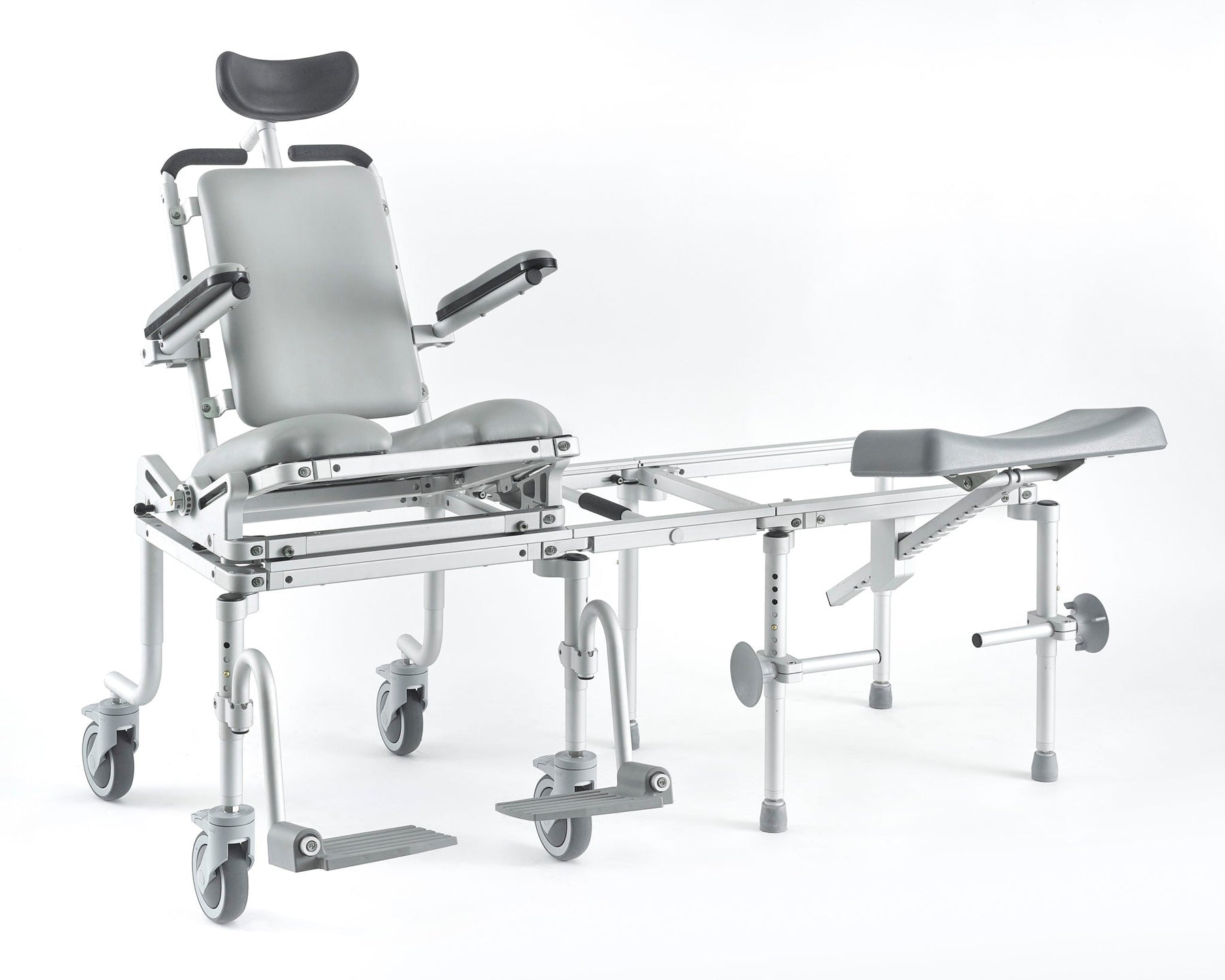 For children with caregiver assistance, a center-of-mass, tilt-in-space, full-featured model with head support for a child with a higher-level disability, providing maximum comfort and stability. A commode chair, tub access slider system, and in-home mobility chair in one complete unit. Requiring just one bedside transfer, the MC6000TiltPed eliminates the need for transfers onto toilets and into tubs in the dangerous bathroom environment. Safe and convenient for user and caregiver, the system includes the smoothest rolling transfer system available on the market.