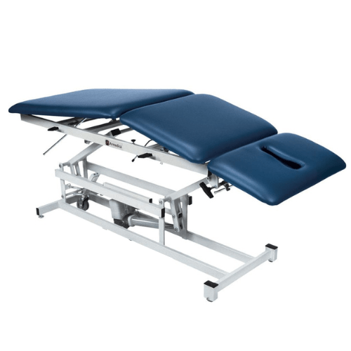 The Armedica AM-BA300 Three-Section Bar Activated Hi-Lo Treatment Table with Manual Elevating Midsection combines an adjustable three-section top design with a strong, steel base and an incredible 500 lb. lifting capacity. The three section top enables proper patient positioning with a manual elevating midsection. Power assisted height adjustment allows for easier patient transfers with dual foot bar control.