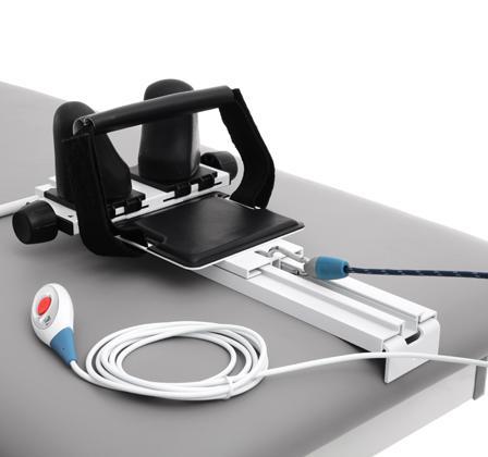The TTET300’s roller-mounted surface prevents friction below the hips and legs, allowing to apply the full traction force during vertebral treatment. In addition, because the rolling sections can be locked in place, this variable-height traction table also serves as an ideal treatment couch.
