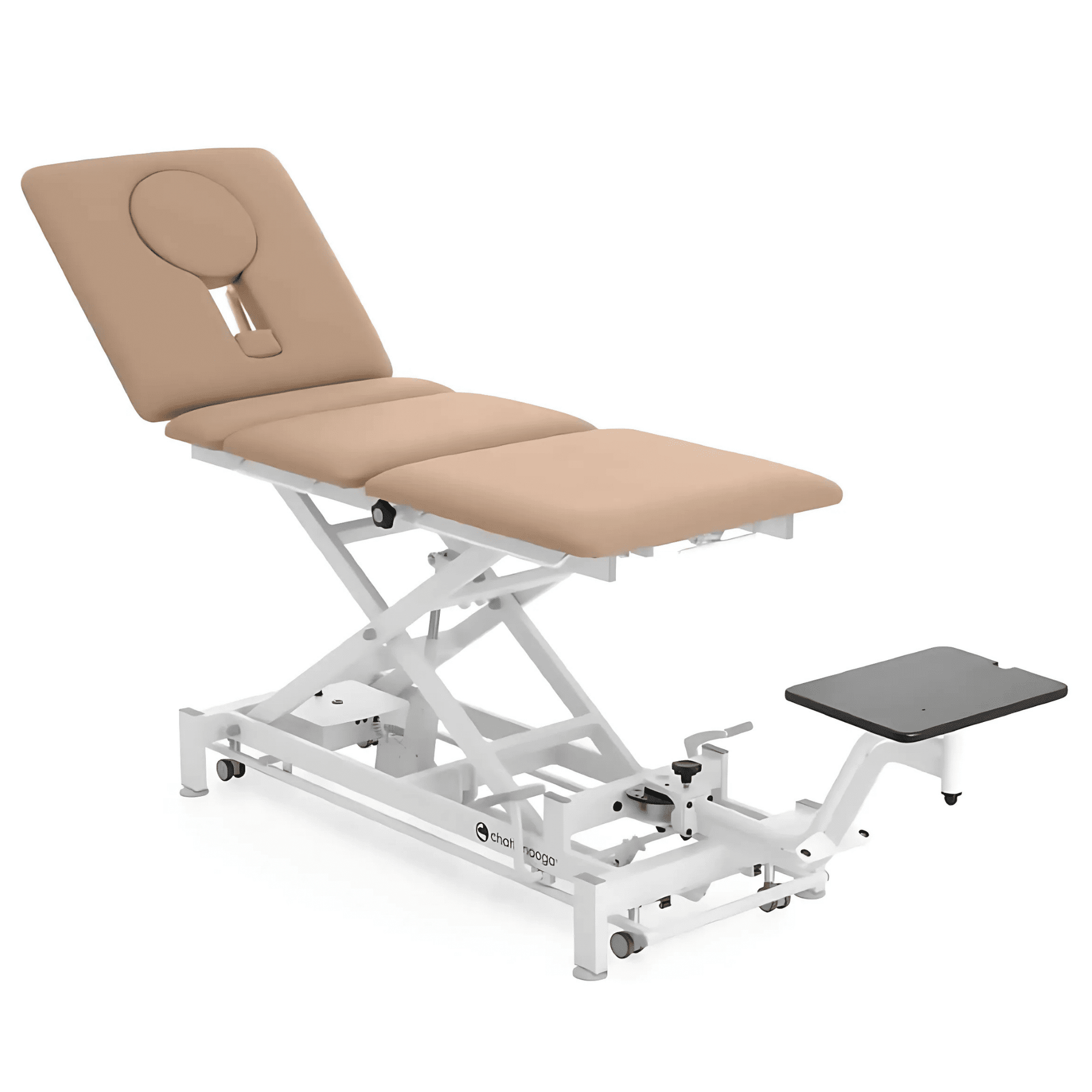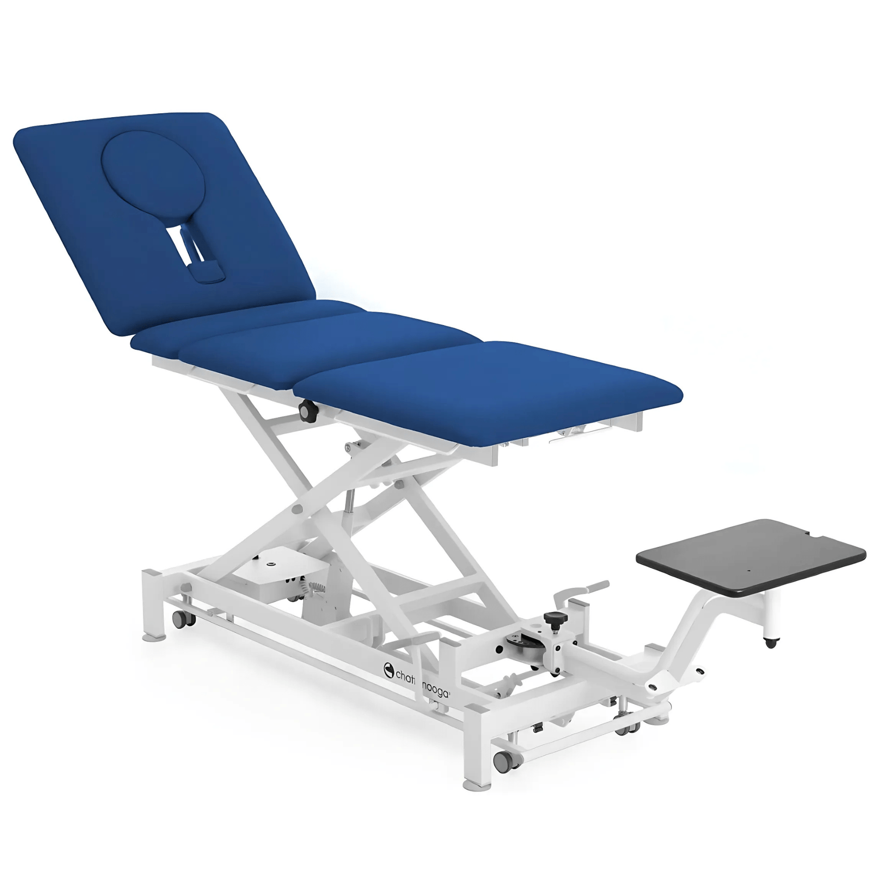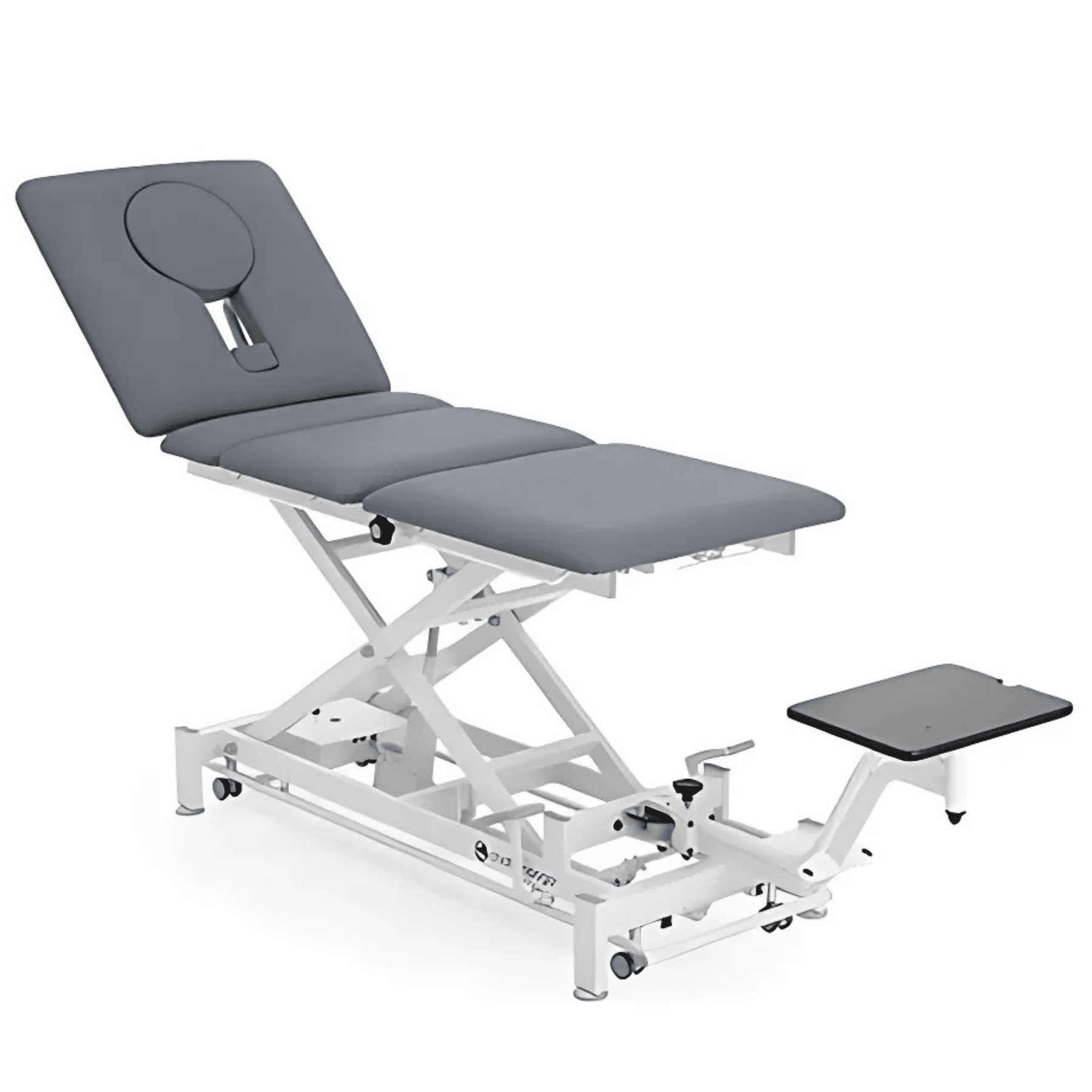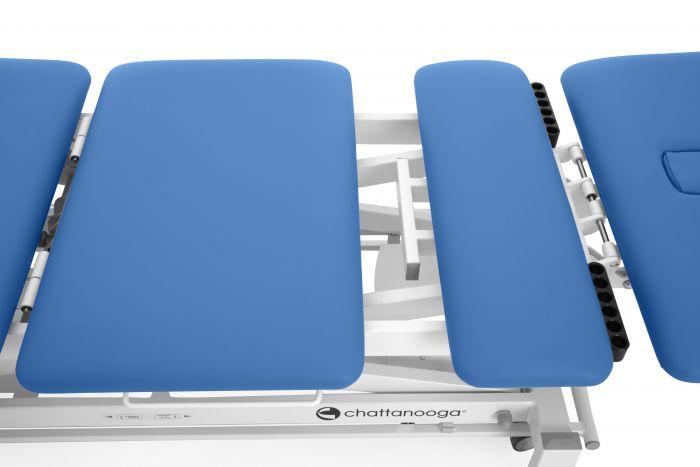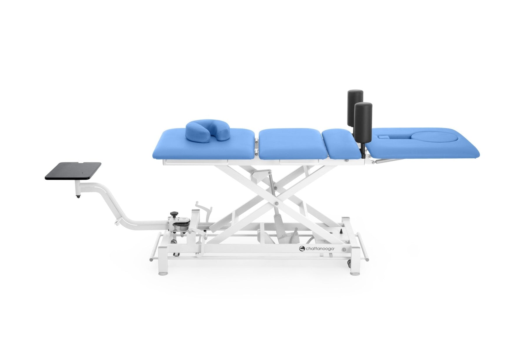 The Galaxy TTET400 is a multifunctional 4-section traction table which, in conjunction with a traction unit, aids in efficient spinal traction treatment. The TTET400’s roller-mounted surface helps prevent friction below the hips and legs, aiding in full traction force during vertebral treatment. In addition, because the rolling sections can be locked in place, this variable-height traction table can also serve as an additional treatment couch.