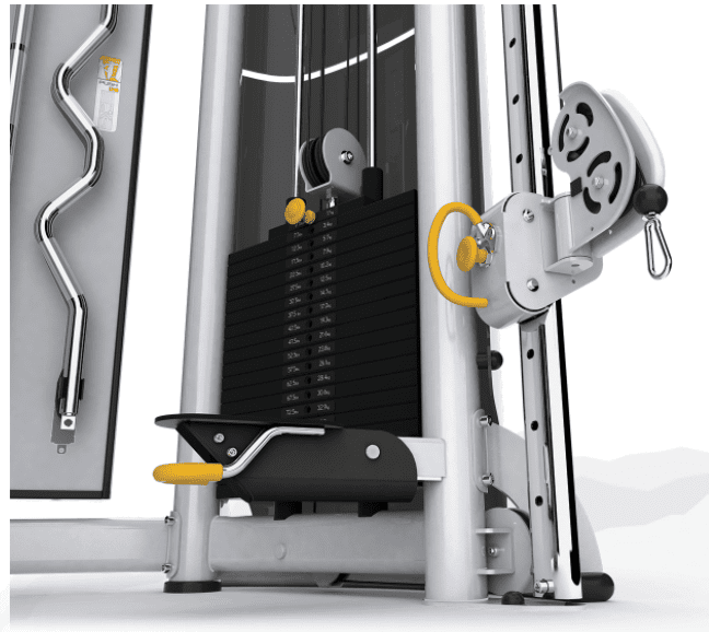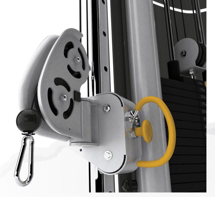 - Swiveling accessory station accommodates more training handles and attachments