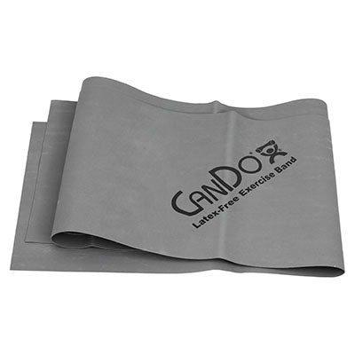 CanDo exercise band is an economic solution for upper and lower body exercise. Lightweight, compact and portable. Durable. Effective when used alone, or with handles and anchors. Color-coded according to the exercise band's resistance. CanDo is licensed to use the Thera-Band color sequence so resistance level is easily identified. Available in 8 levels of resistance for progressive exercise. Levels range in order of resistance from least to greatest resistance: tan, yellow, red, green, blue, black, silver, gold. Uniform width - each band is 5" wide.
