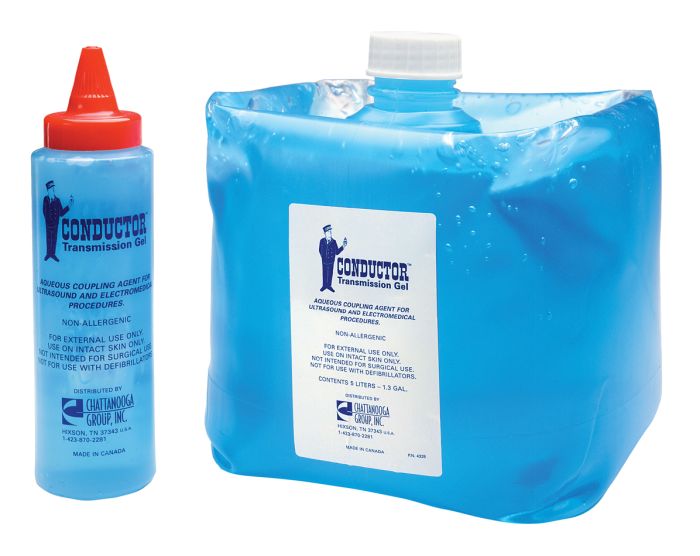 Conductor Transmission Gel is a water soluble, non-greasy ultrasound and electrical coupling gel. It will not irritate tissues or damage the ultrasound applicator. It spreads evenly and is an efficient coupling gel for diagnostic and therapeutic procedures.