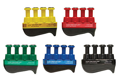 The CanDo Digi-Flex LITE develops isolated finger strength, flexibility and coordination as it builds hand and forearm strength. Each finger button can individually lock. Each button has a single spring that is covered by plastic sheath. Use each button independently to exercise fingers or compress the entire unit for complete hand and forearm strengthening. Progressive?color-coded resistance gives patient positive feedback.