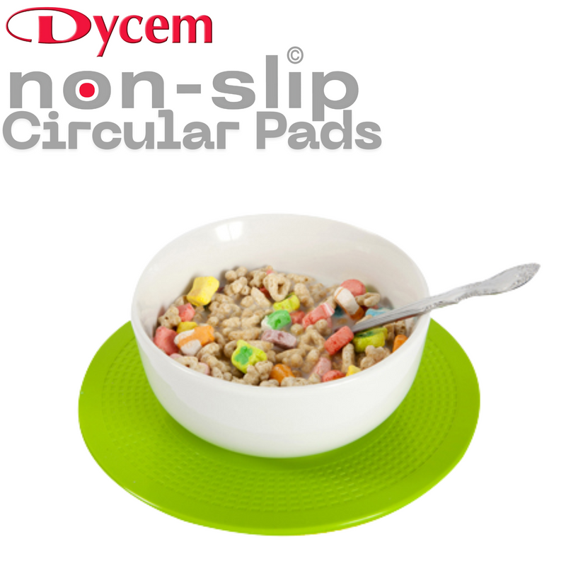 The Dycem Latex Free Non-Slip Circular Pad provides a secure and stable surface that anchors items, such as cups, plates, tools, note pads and telephones on almost any table or tray! Dycem placemats are designed to improve the stability of a variety of objects during therapy and around the home. Material is reusable and easy to clean and are latex free. Choose between a wide selection of colors and four different size options (Options may vary)