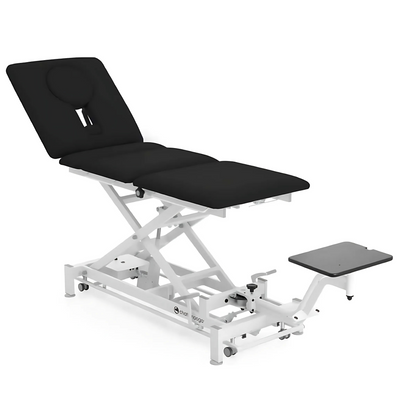 The Galaxy TTET400 is a multifunctional 4-section traction table which, in conjunction with a traction unit, aids in efficient spinal traction treatment. The TTET400’s roller-mounted surface helps prevent friction below the hips and legs, aiding in full traction force during vertebral treatment. In addition, because the rolling sections can be locked in place, this variable-height traction table can also serve as an additional treatment couch.