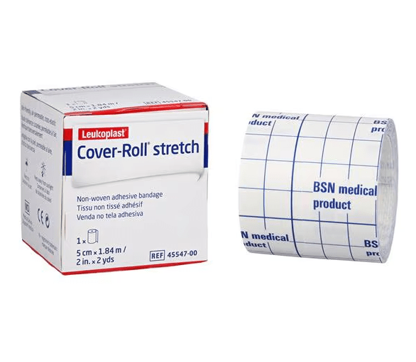 The Cover-Roll Stretch adhesive bandage from BSN Medical provides significant comfort and mobility while the cross-elastic non-woven structure of the bandage provides light, gentle compression. The cross-elastic weave helps the Cover-Roll Stretch adhesive bandage conform and adhere to difficult body contours. Cover-Roll Stretch adheres well even in the presence of moisture and can be applied directly to the skin or on top of a primary wound dressing for protection not only to the dressing, but the entire wound site as well. This reliable and gentle adhesive is especially suitable for sensitive skin from pediatrics to geriatrics.