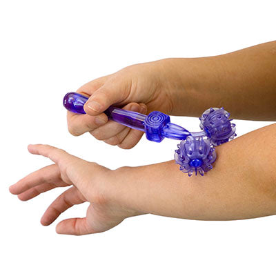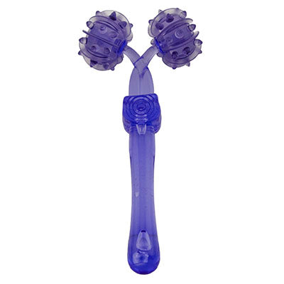 Target and soothe aches and pains with the mini wheel massager. This product features a long handle with two rotating wheels. Roll the rotating wheels across your shoulders, back, or legs to relax sore, tight muscles and improve blood circulation. Use the handle end of this product as a trigger point massager. Colors of this product will vary. This product can be used for clinic or at home use.