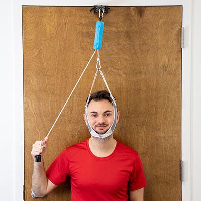 Say goodbye to oversized cervical traction equipment and hello to the all-new NeckPro II. The NeckPro II is a cervical traction system that reduces neck pain. Use it in the comfort of your home or office for whenever you feel pain or discomfort. This effective physical therapy device helps reinstate motion and joint flexion in your neck. Which is ideal for aiding in the relief of stiff, arthritis, disc bulges, herniations, cervical radiculopathy, and much more. Just using it for 10 to 20 minutes will make you feel rejuvenated and pain free. Unlike other cervical traction devices, which may rely on waterbags or heavy weights to create the therapeutic tension, the NeckPro II relies on a simple cord device. With every pull and click of the cord, the tension increases by approximately one pound. Going all the way up to 25 lbs.! The fact that it is a small and simple device allows you to take it with you anywhere. The NeckPro II is extremely comfortable and easy to use. Simply set it up over any door and freely adjust the height in a single pull.