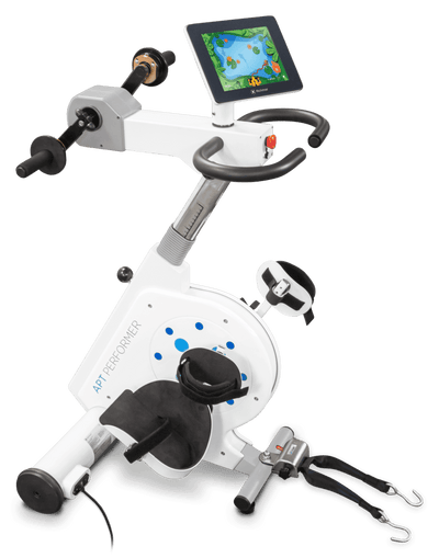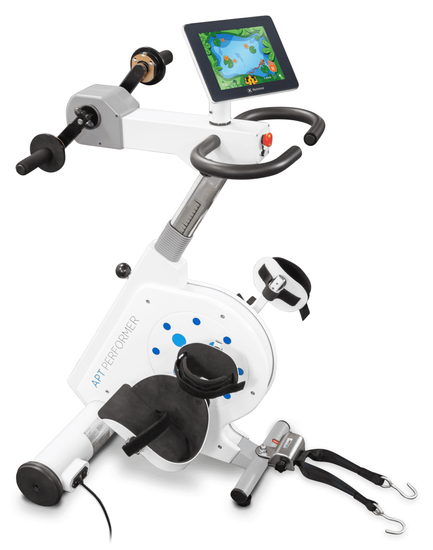 - Upper extremity handles and pedal rotate 180° for adjustment according to therapy being used
