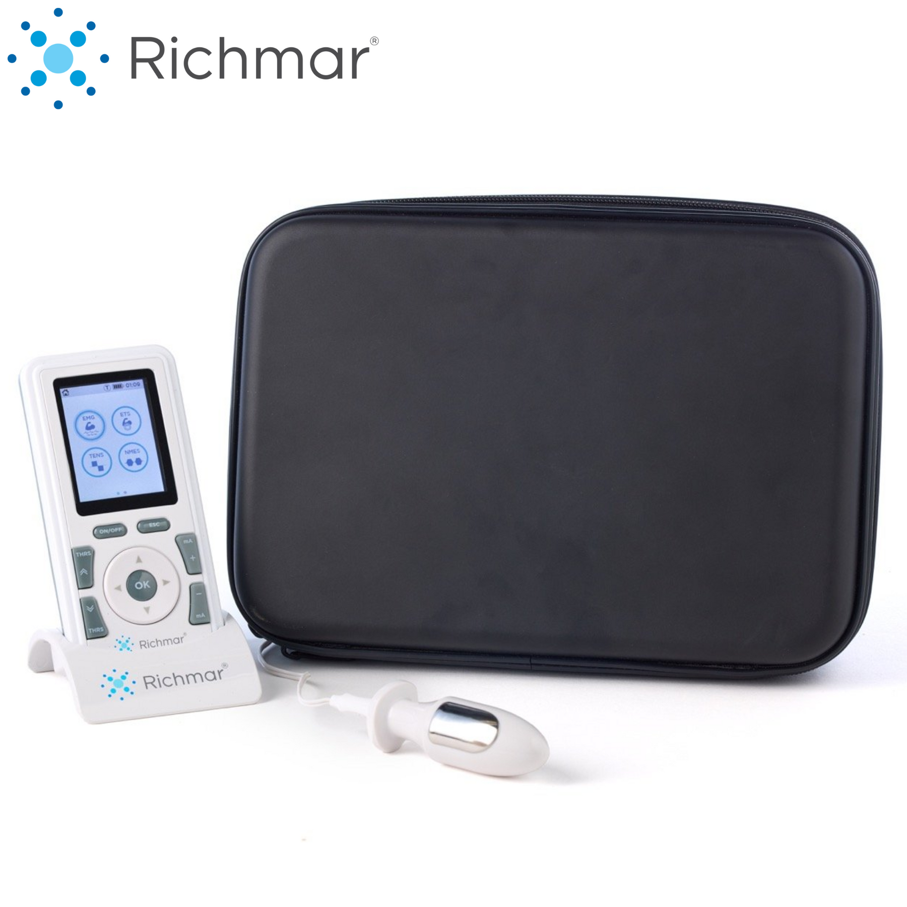 Introducing the Richmar EMG Pro Portable Electrotherapy Device, the latest electrotherapy device from Richmar. The EMG Pro is a single channel, portable electrotherapy device with EMG Biofeedback, EMG Triggered Stim, TENS and NMES. Each mode ("In Patient Mode" & "In Therapist Mode") features preset and customizable programs, designed to assist with the various components of muscle rehabilitation, such as pain management, muscle strengthening and training, muscle relaxation and re-education, as well as urinary incontinence and pelvic floor health. This unit includes a 3 year warranty, and is Rx Only.