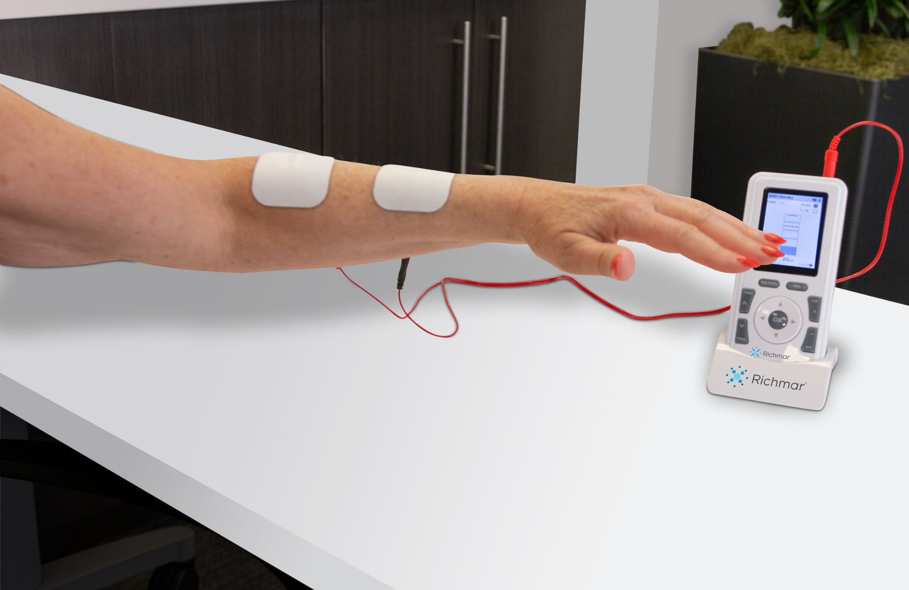 The Richmar EMG Pro is a valuable rehabilitation tool that can be used across patient populations. Whether being utilized for orthopedic and sports rehab, or treating patients with neuralgic impairment, this innovative and multifaceted rehab training device is designed to benefit both patients and clinicians. This all-in-one rehab tool is perfect for a wide variety of treatments that can be used in clinics, at home, or on the go!