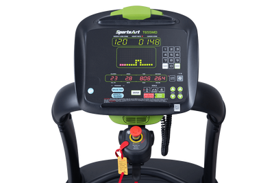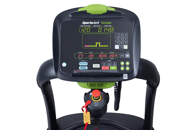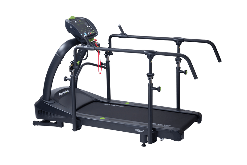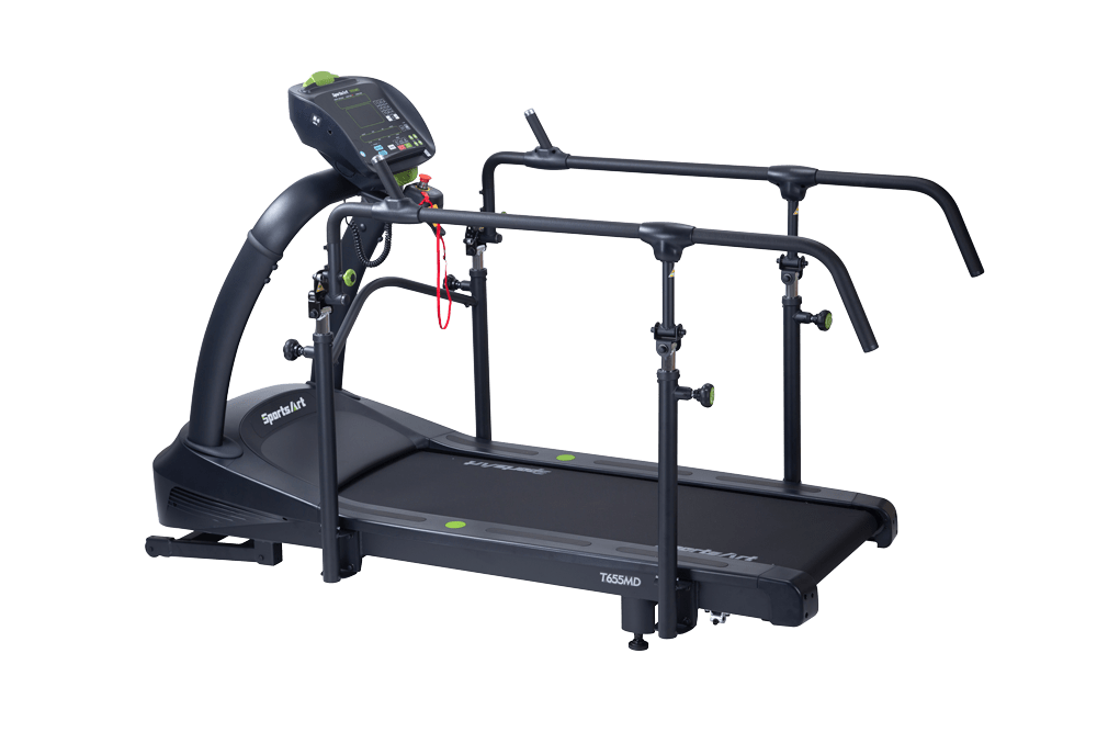 SportsArt rehabilitation treadmills are designed specifically for cardiac and physical therapy markets and come loaded with unique features, programs, and user amenities to help treat more patients more effectively. The T655MD offers a greater incline range and long medical handrails that can rise, lower and angle inward. Additionally, a detachable step has been added, lowering the step-up height. The T655MD comes standard with a wired controller, allowing the physician or rehabilitation technician to easily control both speed and incline of the unit.