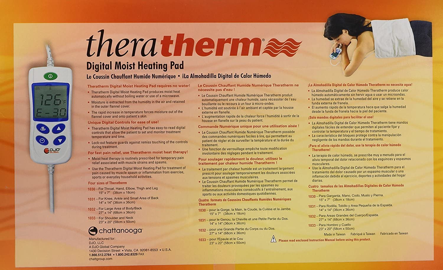 Theratherm Digital Moist Heat Pack provides deep moist heat therapy for temporary relief from pain associated with arthritis, back pain caused by muscle spasm and inflammation caused by strain and tension. Its flannel cover draws moisture from the air; as the pack’s temperature rises, moisture is released onto the skin to speed relief.