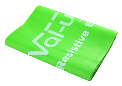 Because Resistance Bands present a challenge comparable to weight training, the variety of exercises is just as unlimited. So versatile, the entire 5' length isn't needed for some of the most impactful exercises. Short lengths are great for arm and chest exercises. Medium strips are ideal for workouts that target the feet to the hips. Longer lengths enable full body exercises such as squats and lunges, which aid the core and back. With the user choosing the resistance and the length needed to exercise, each pre-cut band is its own personalized and customized workout. Able to be used seated or standing, Resistance Bands are terrific for increasing and improving flexibility and mobility. Expect to be surprised by how much you can really do with resistance bands. Additionally, because they're Latex-free, the bands are safe for everyone. The bands are color-coded based on seven levels of resistance and each resistance is available in 6 Yd. and 50 Yd. rolls as well as 100 Yd. packages. 5-piece collections (progressive resistances, same length) are also available along with pre-cut 5' strips (same length, same resistance), which come individually or in 30-unit packages. This is a 5-piece set featuring Pre-Cut 5' lengths of Peach (Level 1/7), Orange (Level 2/7), Lime (Level 3/7) Blueberry (Level 4/7) and Plum (Level 5/7) Resistance Bands. Exercise resistance bands offer an intense, low-impact workout. Please consult with your healthcare provider to determine the most effective resistance for your workout routine. A terrific tool for those recovering from hip, shoulders or knee surgery. Increase impact and options to workouts by adding handles, anchors, cuffs, exercise bars or other accessories (available separately). More than just a workout tool, Val-u-Bands also aid in rehabbing from sports-related and other injuries. Incredibly compact and easy to take on-the-go. Wrap some up and store it or toss it in a carry bag or suitcase.