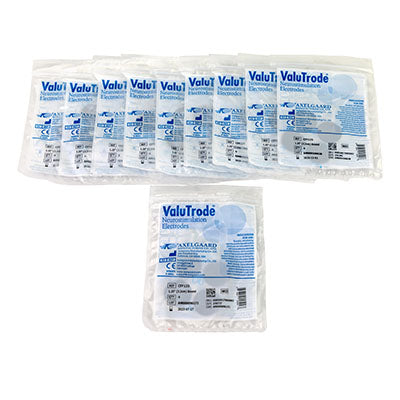 ValuTrode Foam neurostimulation electrodes feature the same construction as ValuTrode Cloth electrodes but with a white foam top. Every lead wire interface is customized for each electrode to optimize current distribution for all the various shapes and sizes. Featuring a multi-layer MultiStick hydrogel, ValuTrode electrodes are known for their durability and multiple applications to the skin. These electrodes each measure 1.25 inches and are round in shape. There are 40 electrodes per case.